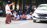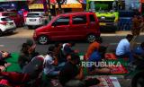 Jamaah shalat Jumat Masjid Al Ittihad, Pejaten, Pasarminggu, Jakarta mengatur lalu lintas di antara jamaah yang meluber hingga ke jalanan, Jumat (7/8). Meski jarak antar jamaah tidak begitu renggang, jamaah meluber hingga Jl Pejaten. (FOTO : Yogi Ardhi/Republika)