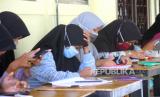 REPUBLIKA.CO.ID, BANJARMASIN -- Sejumlah pelajar dari berbagai jenjang sekolah mengikuti proses belajar mengajar dalam jaringan (daring) menggunakan fasilitas WiFi gratis, di Masjid Al Muhajirin, Banjarmasin, Kalimantan Selatan, Sabtu (8/8).