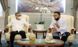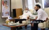 REPUBLIKA.CO.ID, BANDUNG -- Ketua Dewan Komisioner OJK RI Wimboh Santoso sambangi Gubernur Jawa Barat Ridwan Kamil di Gedung Pakuan, Kota Bandung, Ahad (9/8).