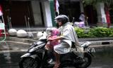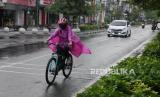 REPUBLIKA.CO.ID, YOGYAKARTA -- Pengendara becak bermotor menggunakan jas hujan melintas di kawasan Malioboro, Yogyakarta, Selasa (11/8).