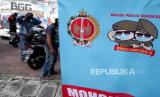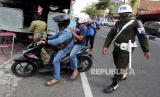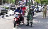 Pengendara terkena razia masker di kawasan Pasar Beringharjo, Yogyakarta, Selasa (11/8). Pemkot Yogyakarta menggalakkan kembali himbauan penggunaan masker masyarakat. Untuk mengingatkan salah satunya dengan melakukan razia dan memberikan penyuluhan. Namun, tidak diberlakukan denda bagi pengendara bermotor yang tidak menggunakan masker. (FOTO : Wihdan Hidayat / Republika)