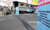 REPUBLIKA.CO.ID, YOGYAKARTA -- Petugas gabungan dari Gugus Tugas Penanganan Covid-19 melakukan razia masker di kawasan Pasar Beringharjo, Yogyakarta, Selasa (11/8).