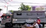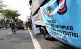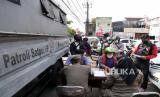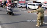 Petugas gabungan dari Gugus Tugas Penanganan Covid-19 melakukan razia masker di kawasan Pasar Beringharjo, Yogyakarta, Selasa (11/8). Pemkot Yogyakarta menggalakkan kembali himbauan penggunaan masker masyarakat. Untuk mengingatkan salah satunya dengan melakukan razia dan memberikan penyuluhan. Namun, tidak diberlakukan denda bagi pengendara bermotor yang tidak menggunakan masker. (FOTO : Wihdan Hidayat / Republika)