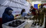 Vice President Corporate Social Reponsibility Pertamina Arya Dwi Paramita (kedua kanan) bersama Kabid Rehabilitasi Dinas Sosial Provinsi DKI Jakarta Prayitno (kanan) saat meninjau pembuatan telur asin dari penyandang tuna netra di Panti Sosial Bina Netra, Tungu dan Wicara Cahaya Batin, Cawang, Jakarta, Selasa (11/8). PT Pertamina (Persero) memberikan bantuan CSR dalam program pemberdayaan usaha kepada tujuh panti sosial. (FOTO : Republika/Putra M. Akbar)