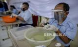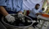 Sejumlah penyandang tuna netra saat membuat telur asin di Panti Sosial Bina Netra, Tungu dan Wicara Cahaya Batin, Cawang, Jakarta, Selasa (11/8). PT Pertamina (Persero) memberikan bantuan CSR dalam program pemberdayaan usaha kepada tujuh panti sosial. (FOTO : Republika/Putra M. Akbar)