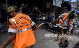 Pelanggar aturan penggunaan masker membersihkan area publik di kawasan Taman Alun-alun Kota Cimahi, Jalan Raya Barat, Kota Cimahi, Rabu (12/8). Pemerintah Kota Cimahi menerapkan sanksi denda sebesar Rp150 ribu serta sanksi sosial yakni kewajiban membersihkan area publik bagi warga yang tidak menggunakan masker di tempat umum. Foto: Abdan Syakura/Republika (FOTO : ABDAN SYAKURA/REPUBLIKA)