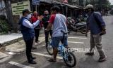 Wali Kota Cimahi Ajay M Priatna menegur warga yang tidak menggunakan masker di kawasan Taman Alun-alun Kota Cimahi, Jalan Raya Barat, Kota Cimahi, Rabu (12/8). Diperlukan aturan tegas dan keras bagi warga yang membandel dengan berbagai alasan tidak mengenakan masker saat berada di tempat publik. (FOTO : ABDAN SYAKURA/REPUBLIKA)