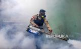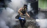 Layanan fogging ini sebagai rangkaian peringatan Hari Pramuka pada 14 Agustus nanti. (FOTO : ABDAN SYAKURA/REPUBLIKA)