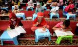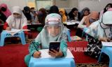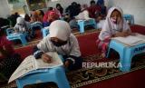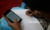 Sejumlah anak belajar dengan memanfaatkan hotspot gratis di Musholla An-Nur, Kosambi, Cengkareng, Jakarta, Rabu (12/8). Program hotspot gratis atau PAK EKO (Paket Edukasi Online) gratis ini diluncurkan secara simbolis oleh Ketua DPW PAN DKI Jakarta Eko Patrio dengan tujuan membantu para siswa kurang mampu dalam belajar daring karena terkendala paket kuota atau internet. (FOTO : Prayogi/Republika)