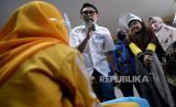 Ketua DPW PAN DKI Jakarta Eko Hendro Purnomo atau Eko Patrio berbincang dengan anak-anak yang sedang belajar dengan memanfaatkan hotspot gratis di Musholla An-Nur, Kosambi, Cengkareng, Jakarta, Rabu (12/8). Program hotspot gratis atau PAK EKO (Paket Edukasi Online) gratis ini diluncurkan secara simbolis oleh Ketua DPW PAN DKI Jakarta Eko Patrio dengan tujuan membantu para siswa kurang mampu dalam belajar daring karena terkendala paket kuota atau internet. (FOTO : Prayogi/Republika)