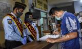 Mantan terpidana kasus korupsi Wisma Atlet Muhammad Nazaruddin mengisi buku tamu di Balai Pemasyarakatan (Bapas) Kelas I Bandung, Jalan Ibrahim Adjie, Kota Bandung, Kamis (13/8). (FOTO : ABDAN SYAKURA/REPUBLIKA)