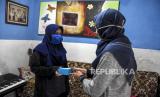 Anggota Komunitas Kangasoi (kanan) menyerahkan donasi berupa ponsel untuk siswa sebagai sarana belajar daring di Jalan Anyer Dalam, Kebonwaru, Kota Bandung, Kamis (13/8). Kedua komunitas tersebut menggalang donasi berupa ponsel bekas berbasis android dan laptop yang disalurkan untuk siswa di berbagai wilayah Bandung guna dimanfaatkan untuk mengikuti pembelajaran jarak jauh (PJJ) secara daring selama pandemi Covid-19. Foto: Abdan Syakura/Republika (FOTO : ABDAN SYAKURA/REPUBLIKA)
