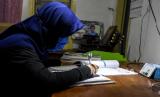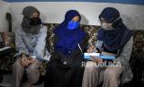 Siswa belajar menggunakan ponsel hasil donasi di kediamannya di Jalan Anyer Dalam, Kebonwaru, Kota Bandung, Kamis (13/8). Kedua komunitas tersebut menggalang donasi berupa ponsel bekas berbasis android dan laptop yang disalurkan untuk siswa di berbagai wilayah Bandung guna dimanfaatkan untuk mengikuti pembelajaran jarak jauh (PJJ) secara daring selama pandemi Covid-19. Foto: Abdan Syakura/Republika (FOTO : ABDAN SYAKURA/REPUBLIKA)