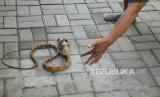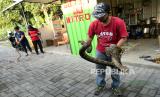 REPUBLIKA.CO.ID, YOGYAKARTA -- De Braso, pegiat ular Jogja menunjukan teknik memegang ular di Gamping, Sleman, Yogyakarta, Kamis (13/8).