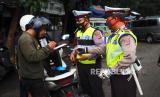 Aparat gabungan dari Polsek Bandung Kidul dan Satpol PP Kecamatan Bandung Kidul merazia warga yang tidak mengenakan masker di kawasan Pasar Kordon, Bandung, Jumat (14/8). Pelanggar didata dan diimbau untuk menaati protokol kesehatan dengan mengenakan masker saat bepergian. FOTO YOGI ARDHI (FOTO : Yogi Ardhi/Republika)