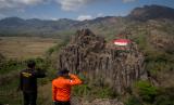 Pengibaran Bendera Merah Putih berukuran 12X16 meter di atas bukit tersebut untuk menyambut perayaan HUT ke-75 Republik Indonesia.