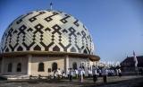 REPUBLIKA.CO.ID, BANDUNG -- Pengurus Dewan Kemakmuran Masjid (DKM) Masjid Raya Bandung mengikuti Upacara HUT RI ke-75 di area kubah Masjid Raya Bandung, Jalan Dalem Kaum, Kota Bandung, Senin (17/8). Upacara tersebut dilakukan dengan menerapkan protokol kesehatan. Jumlah peserta upacara dibatasi, dan wajib menggunakan masker.