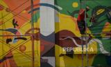 REPUBLIKA.CO.ID, JAKARTA -- Seniman yang tergabung dalam komunitas gallery Pasar Seni Gembrong (G Art) melukis mural bersama di rooftop Gallery Pasar Seni Gembrong, Jakarta, Senin (17/8). Kegiatan tersebut dalam rangka memperingati HUT RI ke-75 serta pembukaan Pameran Demi Indonesia (Pamdemi) dengan tema Untuk Indonesia yang diikuti oleh 17 pelukis yang digelar di seluruh Indonesia hingga 28 Desember 2020.