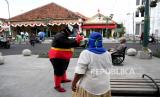 REPUBLIKA.CO.ID, YOGYAKARTA -- Warga dengan menggunakan kostum super hero membagikan masker di lokasi wisata titik nol Yogyakarta, Senin (17/8). Selain membagikan masker, mereka juga mengajak warga yg berkunjung di titik nol untuk tertib menggunakan masker.