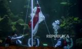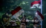 REPUBLIKA.CO.ID, JAKARTA -- Sejumlah penyelam profesional mengibarkan bendera di dalam air saat melakukan upacara di Seaworld Ancol, Jakarta, Senin (17/8). Peringatan upacara bendera di dalam air tersebut sebagai tanda syukur dan menghargai jasa pahlawan atas kemerdekaan RI hingga 75 tahun Indonesia menjadi Negara yang merdeka.
