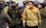 Ketua MPR Bambang Soesatyo (kanan) berjalan bersama Menko Polhukam Mahfud MD saat menghadiri Hari Konstitusi 2020 di Gedung Nusantara IV, Kompleks Parlemen, Senayan, Jakarta, Selasa (18/8/2020). (FOTO : Antara/M Risyal Hidayat)