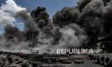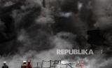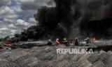 REPUBLIKA.CO.ID, PEKANBARU -- Petugas Pemadam Kebakaran berusaha memadamkan api ketika terjadi kebakaran di pabrik pengolahan ban bekas di Pekanbaru, Riau, Selasa (18/8/). Belum diketahui penyebab terjadinya kebakaran yang terjadi sekitar pukul 09.00 Selasa (18/8) pagi itu.