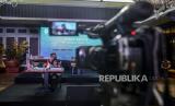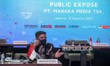 Direktur Utama Mahaka Media Adrian Syarkawi memberikan paparan usai Rapat Umum Pemegang Saham (RUPS) Tahunan di Jakarta, Rabu (19/8). PT Mahaka Media Tbk mengalami peningkatan pendapatan usaha dari sektor iklan sebesar 37 persen dibandingkan periode sebelumnya dan meningkatkan likuiditas lancar yang ditunjukan dengan peningkatan rasio keuangan aset lancar terhadap liabilitas jangka pendek sebesar 9 persen. Republika/Putra M. Akbar (FOTO : Republika/Putra M. Akbar)