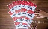 REPUBLIKA.CO.ID, JAKARTA -- Petugas menunjukkan prangko seri Presiden dan Wakil Presiden RI 75 Tahun Indonesia Merdeka di Jakarta, Rabu (19/8/2020).