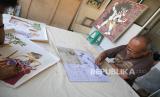 Perupa Subandi Giyanto menyelesaikan lukisan wayang di Bangunjiwo, Bantul, Yogyakarta, Rabu (19/8). Sejak kecil Subandi menggeluti dunia membuat wayang, ini memengaruhi karyanya hingga kini. Subandi lebih terkenal dengan lukisan wayang dengan media kaca. Namun, ternyata lukisan wayangnya juga dengan kanvas, logam, atau patung. Terkadang workshop Subandi juga menjadi rujukan belajar mahasiswa dalam dan luar negeri. (FOTO : Wihdan Hidayat / Republika)