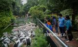 REPUBLIKA.CO.ID, JAKARTA -- Pengunjung mengamati gajah sumatera (Elephas maximus sumatranus) di Taman Margasatwa Ragunan (TMR), Jakarta, Kamis (20/8).