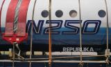 N250 karya mendiang Presiden Habibie ini disebut-sebut menjadi alat penghubung antara pulau di negara kepulauan ini. (FOTO : Wihdan Hidayat / Republika)