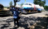 Pesawat N250 Prototipe Aircraft 01 (PA01) Gatotkaca sudah tiba di Pangkalan TNI AU Adisutjipto, Yogyakarta, Jumat (21/8). Dengan menggunakan tiga truk kontainer pesawat dipecah menjadi tiga bagian yakni badan pesawat, sayap, dan mesin. Pesawat buatan Indonesia yang dirancang oleh BJ Habibie ini diserahkan oleh PT Dirgantara Indonesia (PTDI) untuk melengkapi koleksi kepada Museum Pusat Dirgantara Mandala Yogyakarta. Pada Sabtu (22/8) rencanya akan dimulai proses perakitan kembali pesawat. (FOTO : Wihdan Hidayat / Republika)