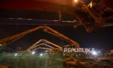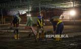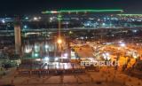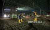 REPUBLIKA.CO.ID, JAKARTA -- Pekerja mengerjakan pengecoran dalam volume besar pada proyek pembangunan Jakarta International Stadium (JIS) di Sunter, Jakarta, Jumat (21/8) malam.
