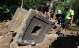 Sejumlah warga membersihkan batu candi di Candi Tibayan, Jatinom, Klaten, Jawa Tengah, Ahad (23/8/2020). Aksi membersihkan candi era Mataram Kuno abad 9-10 yang dilakukan oleh Klaten Heritage Community (KHC) bersama warga setempat tersebut bertujuan untuk menjaga dan merawat benda cagar budaya yang memiliki nilai sejarah. ANTARA FOTO/Aloysius Jarot Nugroho/foc. (FOTO : Aloysius Jarot Nugroho/ANTARA )
