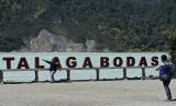 Wisatawan berpose di kawasan Taman Wisata Alam (TWA) Talaga Bodas, Wanaraja, Kabupaten Garut, Jawa Barat, Ahad (23/8/2020). Objek wisata yang dikelola Balai Konservasi Sumber Daya Alam (BKSDA) Jawa Barat II ini merupakan kawah di lereng Gunung Talaga Bodas dengan status aktif tapi tidak berbahaya dan aman untuk dikunjungi. (FOTO : ANTARA/Candra Yanuarsyah)