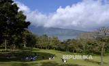 Wisatawan menikmati pemandangan di kawasan Kebun Raya Eka Karya Bali, Tabanan, Bali, Ahad (23/8/2020). (FOTO : Antara/Fikri Yusuf)