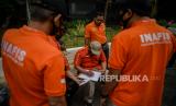 Petugas Pusat Laboratorium Forensik (Puslabfor) bersama tim Inafis Polri melakukan olah TKP di Gedung Utama Kejaksaan Agung Republik Indonesia yang terbakar pada Sabtu (22/8) malam, di Jakarta, Senin (24/8). Berdasakrkan pantauan tim Puslabfor terlihat membawa koper hitam serta sempat menerbang drone saat olah TKP yang dilakukan secara tertutup, hingga saat ini belum diketahui penyebab terjadinya kebakaran yang melanda gedung tersebut. (FOTO : Republika/Thoudy Badai)
