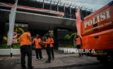Tim Inafis Polri melakukan olah TKP di Gedung Utama Kejaksaan Agung Republik Indonesia yang terbakar pada Sabtu (22/8) malam, di Jakarta, Senin (24/8). Berdasakrkan pantauan tim Puslabfor terlihat membawa koper hitam serta sempat menerbang drone saat olah TKP yang dilakukan secara tertutup, hingga saat ini belum diketahui penyebab terjadinya kebakaran yang melanda gedung tersebut. (FOTO : Republika/Thoudy Badai)