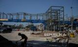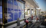 REPUBLIKA.CO.ID, JAKARTA -- Pekerja menyelesaikan proyek pembangunan Halte Transjakarta Senen di Jakarta, Selasa (25/8). Halte tersebut nantinya akan dilengkapi akses yang memudahkan pengguna jasa transportasi terhubung ke kawasan niaga Pasar Senen dan stasiun Pasar Senen. Proyek tersebut ditargetkan rampung pada akhir tahun 2020