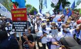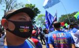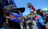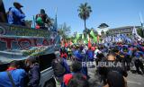 REPUBLIKA.CO.ID, BANDUNG -- Ribuan buruh dari berbagai organisasi menggelar aksi menolak Omnibus Law, di depan Gedung Sate, Kota Bandung, Senin (25/8).
