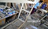 REPUBLIKA.CO.ID, BANTUL -- Pekerja mengerjakan pesanan meja di Studio Kak Ros, Bantul, Yogyakarta, Selasa (25/8). Selama pandemi Covid-19 pesanan furniture custom tetap stabil.
