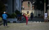 Sejumlah pasien COVID-19 tanpa gejala beraktivitas di Gelanggang Olahraga Remaja (GOR) Tambora, Jakarta, Rabu (26/8). Menurut Kasudin Kesahatan Jakarta Barat, Kristi Wathini penempatan GOR Tambora sebagai tempat isolasi dilakukan karena belasan warga yang terinfeksi COVID-19 tidak memiliki tempat untuk isolasi mandiri yang layak mengingat kawasan Tambora merupakan pemukiman terpadat se-Asia Tenggara. (FOTO : Republika/Thoudy Badai)