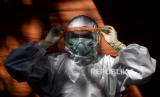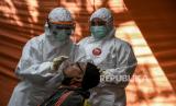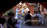 Petugas kesehatan bersiap untuk melakukan tes usap (swab test) di Puskesmas Cimahi Tengah, Kota Cimahi, Rabu (26/8). Pemerintah Kota Cimahi melakukan tes usap (swab test) kepada sedikitnya 1.000 orang guru dalam rangka persiapan apabila pemerintah pusat menetapkan kebijakan sekolah dibuka setelah ditutup sementara akibat pandemi Covid-19. Foto: Abdan Syakura/Republika (FOTO : ABDAN SYAKURA/REPUBLIKA)