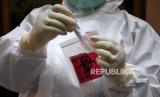 Petugas kesehatan menyimpan sampel lendir saat tes usap (swab tes) di Puskesmas Cimahi Tengah, Kota Cimahi, Rabu (26/8). Pemerintah Kota Cimahi melakukan tes usap (swab test) kepada sedikitnya 1.000 orang guru dalam rangka persiapan apabila pemerintah pusat menetapkan kebijakan sekolah dibuka setelah ditutup sementara akibat pandemi Covid-19. Foto: Abdan Syakura/Republika (FOTO : ABDAN SYAKURA/REPUBLIKA)