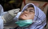 REPUBLIKA.CO.ID, CIMAHI -- Petugas kesehatan melakukan tes usap (swab test) kepada seorang guru di Puskesmas Cimahi Tengah, Kota Cimahi, Rabu (26/8).