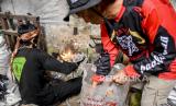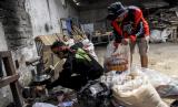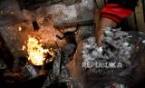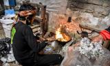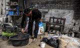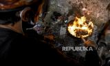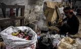 Warga melumerkan sampah plastik untuk dijadikan paving blok di Bank Sampah Sukamaju Sejahtera, Kampung Sukamaju, Padalarang, Kabupaten Bandung Barat, Rabu (26/8). Bank sampah tersebut mampu mengolah sampah sebanyak 100 kilogram dalam sehari dan limbah sampah plastiknya diolah kembali menjadi paving blok yang digunakan untuk pembuatan jalan desa maupun kampung di wilayah tersebut. Foto: Abdan Syakura/Republika (FOTO : ABDAN SYAKURA/REPUBLIKA)