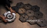 Warga menyelesaikan produksi paving blok dari limbah plastik di Bank Sampah Sukamaju Sejahtera, Kampung Sukamaju, Padalarang, Kabupaten Bandung Barat, Rabu (26/8). Bank sampah tersebut mampu mengolah sampah sebanyak 100 kilogram dalam sehari dan limbah sampah plastiknya diolah kembali menjadi paving blok yang digunakan untuk pembuatan jalan desa maupun kampung di wilayah tersebut. Foto: Abdan Syakura/Republika (FOTO : ABDAN SYAKURA/REPUBLIKA)