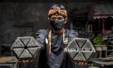 REPUBLIKA.CO.ID, PADALARANG -- Warga menunjukkan paving blok dari limbah plastik di Bank Sampah Sukamaju Sejahtera, Kampung Sukamaju, Padalarang, Kabupaten Bandung Barat, Rabu (26/8).