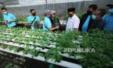 Wali Kota Bandung Oded M Danial meninjau kebun sayur dengan sistem tanam hidroponik dan media pupuk organik sebagai salah satu aplikasi dari program urban farming serta Kurangi, Pisahkan dan Manfaatkan (Kang Pisman), di halaman belakang kantor di Kantor Kecamatan Mandalajati, Jalan Pasir Impun, Kota Bandung, Selasa (26/8). Dalam kesempatan itu dilakukan juga sosialisasi program bayar pajak PBB dengan sampah inovasi hasil kerjasama Badan Pengelolaan Pendapatan Daerah (BPPD) Kota Bandung, dengan Kecamatan Mandalajati, program bank sampah dan Bank BJB. Diharapkan program ini bisa diikuti oleh kecamatan lainnya agar terbentuk kemandirian masyarakat. (FOTO : Edi Yususf/Republika)