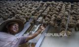 Perajin menyelesaikan pembuatan pot tanaman anggrek berbahan baku sabut kelapa untuk dikirim ke sejumlah daerah di Desa Besuk, Kediri, Jawa Timur, Kamis (27/8/2020). Pot ramah lingkungan berbagai bentuk dan ukuran seharga Rp8.000 hingga Rp500.000 per buah tersebut saat pandemi COVID-19 mengalami peningkatan permintaan dari sebelumnya 10 ribu menjadi 20 ribu buah per bulan dengan omzet mencapai Rp40 juta per bulan. (FOTO : ANTARA/Prasetia Fauzani)
